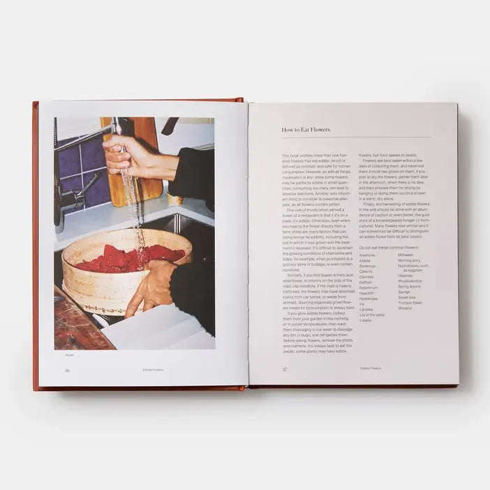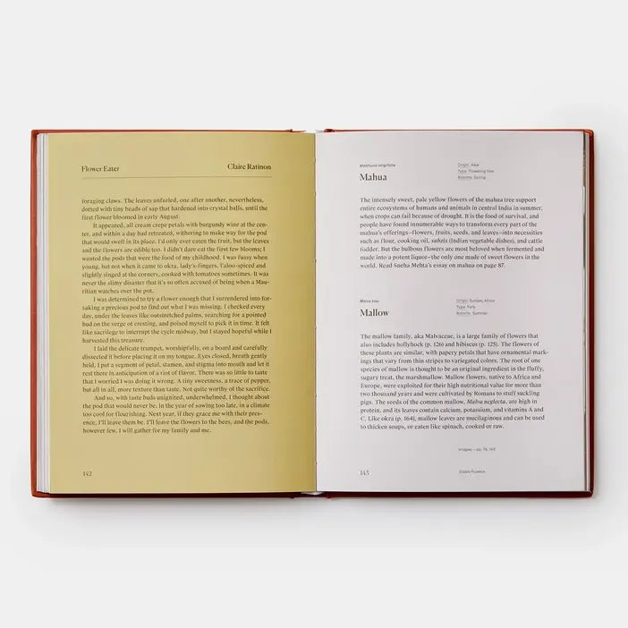 Organizing more than 100 flowers alphabetically by their common name, the book offers handy notes including the flowers’ Latin names, general flavor profiles, origins, blooming seasons, and which parts of the plants are edible, all accompanied by a vibrant photographic portrait.
