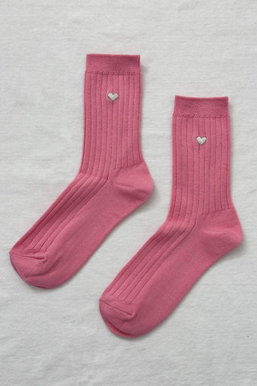 Embroidered Her Socks - Mercerized Combed Cotton Rib: Pink Water + Heart