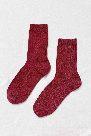 A little sparkle goes a long way. When we are feeling a little extra, this glittery version of our OG Her Socks is our go to gal. She adds a festive element to any outfit! Now in a super soft and supple modal blend yarn, these are the perfect height ribbed socks with just the right amount of sparkle. On those special occasions we love to dress her with a silky dress and strappy heels, or an elegant jumpsuit and pop color pump!