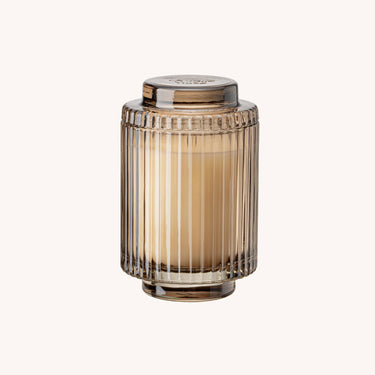 Elevate your space with Amélie: Timeless ribbed glass candles, reminiscent of the Acropolis grandeur. Available in calming colors, they offer a sustainable 40-hour burn with natural soy wax and seamlessly become elegant keepsake containers.