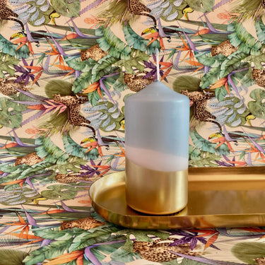 A lovingly hand dipped pillar candle. The delicate shade in the upper part of the candle are complemented by a cool gold tone. Due to the handwork, each candle is a special one-of-a-kind with slight variations in the color gradients.