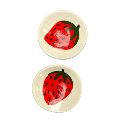 These handmade strawberry catch alls are perfect for rings, trinkets, or holding a single strawberry. Each mini dish is handmade with hand painted strawberry illustration. Due to their handmade nature each dish will vary slightly from each other and the photos.