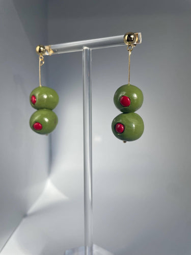 Double Pimento Olive Drop Earrings: Gold Stud Post