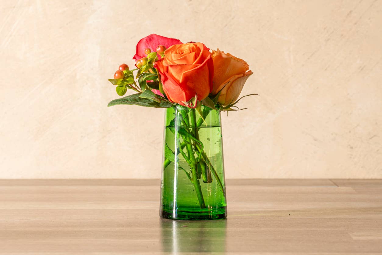 The sleek and simple design of these hand-blown cone shaped glasses are a testament to the style and skill of the artisans who make them. Used for all types of beverages or as little vases to decorate each table setting, you will enjoy the feel of them in your hand as you toast the joys of the day. Works as a beautiful floral vase, too!