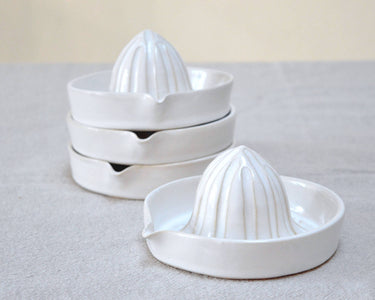 Featuring subtle tonality from its white glaze, this elegant stoneware citrus juicer, handmade on the pottery wheel offers a refined, organic touch to your kitchen. Ideal for juicing your favourite citrus fruits as oranges, limes and lemons.