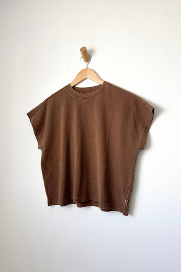 Jeanne Tee is our perfect muscle tee. She features a shorter length to pair perfectly with high waisted bottoms but still give enough coverage for mid-rise bottoms and just the right amount of off shoulder dolman sleeve. She has a high crew neck with an extra wide neckband that adds to her signature charm.