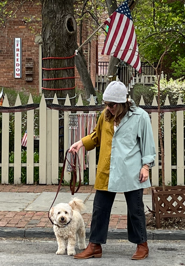 This leash is the best~ Perfect for hands- free dog walking in the city with a coffee in hand or pushing a stroller. You can use this around your waist, or across the body. It is totally adjustable as well for longer or shorter lead. All leather- very durable- and just gets better with age!