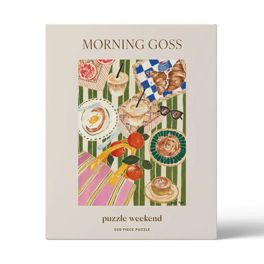 Weekends are for coffee and croissants, with a side of hot goss! This 500 piece puzzle, illustrated by textile print designer & artist Charlie Taylor, puts brunch and buzz together - just as they belong. Made with thick blue puzzle board, this cute puzzle features a satisfying satin matte finish. Whether you and your crew prefer to sip or spill the tea, Morning Goss is perfect if you’re looking for foodie gifts, gifts for coffee lovers, or the ultimate little treat to keep for yourself.