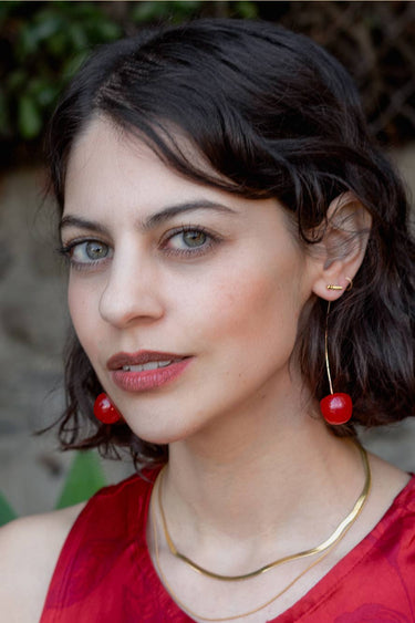 Cherry Threader Earrings - 18K Gold Plated/Resin