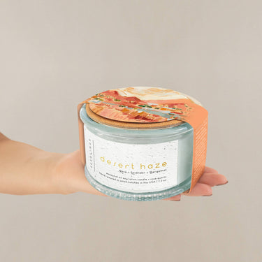 Our candles are hand-poured in small batches in the U.S.A into a 100% recycled glass candle holder. Each candle features a proprietary blend of 100% indigenously sourced essential oils and an ethically sourced moonstone, sodalite, amethyst, rose quartz, citrine, or quartz. Includes artfully designed, matching trivet.