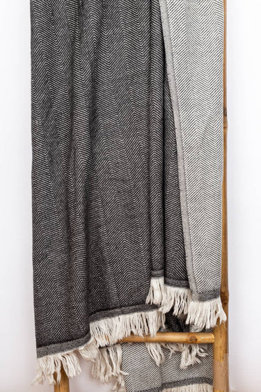 Stay warm and stylish in this blissfully soft hand spun cashmere throw woven into a classic herringbone pattern.