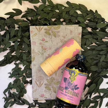 Rose Syrup- perfect for a cocktail, tea, or seltzer. Rim the glass with rosy sugar or add to your tea.