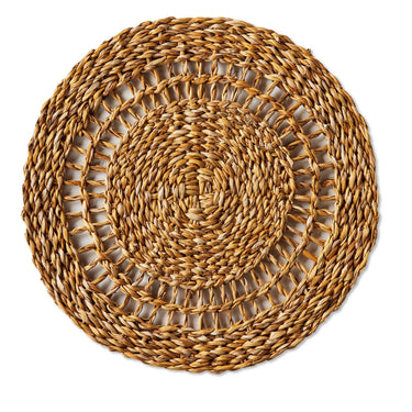 showcase the natural beauty of seagrass with this open weave placemat. hand-braided and woven from natural fibers, it adds a touch of organic texture to your table setting.