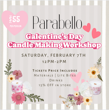 OurĀ Galentine’s Day Candle Making Workshop is the perfect way to celebrate friendship—create your own beautiful candle while enjoying lite bites, drinks, and a little shopping fun.
